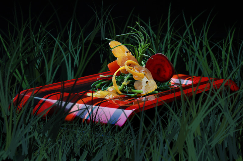 Σε μεγάλη κατσαρόλα με μπόλικο αλατισμένο νερό που βράζει ζεματίζουμε για 1 λεπτό τα αλμυρίκια. Τα αποσύρουμε με τρυπητή κουτάλα και τα βάζουμε σε μια λεκάνη με κρύο νερό και παγάκια. Τα αφήνουμε για 2 λεπτά και τα στραγγίζουμε καλά. Τα μεταφέρουμε σε πιατέλα. Προσθέτουμε τα ντοματίνια, τα παντζάρια και τις λιαστές ντομάτες.